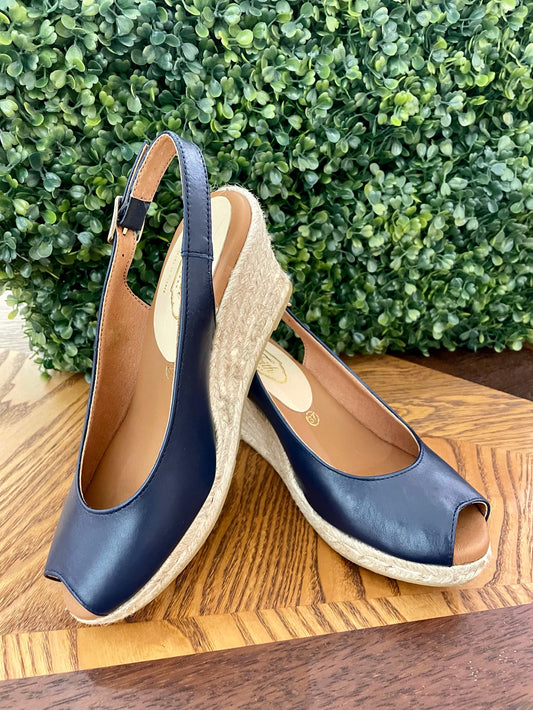 Espadrille Peeptoe Marine Leather
